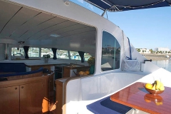Potápěčský katamaran je pohodlná a prostorná mobilní potápěčská základna se 4mi kajutamy po dvou a dvěmi po jednom lůžku. Kajuty jsou prostorné s velkým oknem a vlastní toaletou. Díky rozdělení trupu na dvě části (dva plaváky) je zajištěno i větší soukromý mezi kajutami. K dispozici jsou pak společné prostory salón, veranda a trampolína. Dostatek sladké pitné i teplé vody.